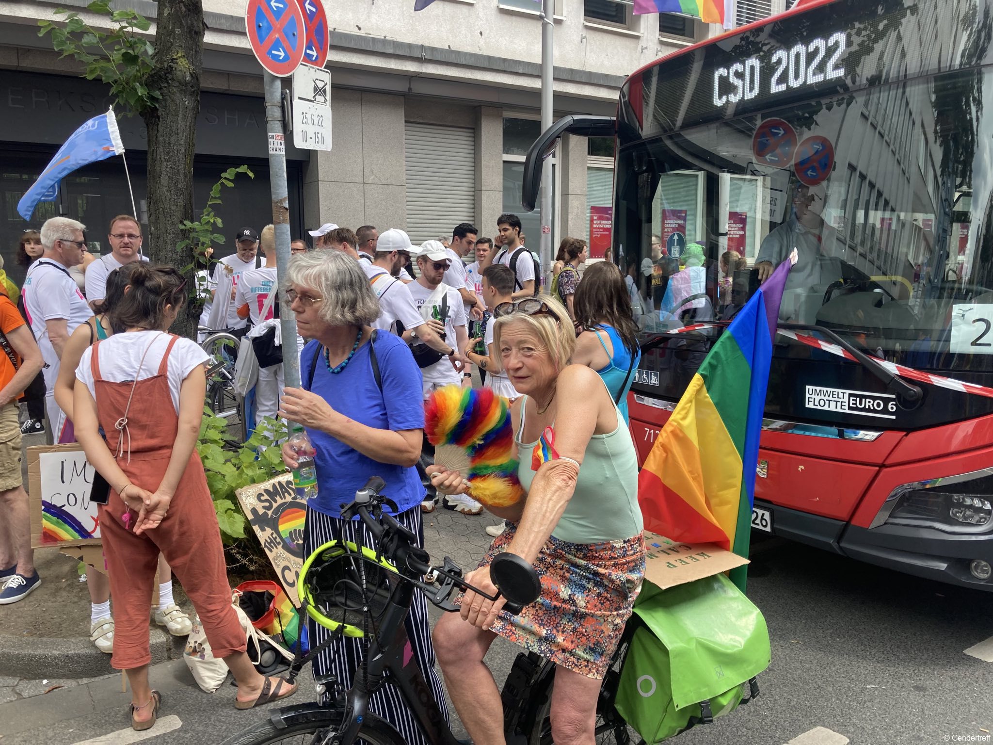 Das war das diesjährige Motto des Düsseldorfer CSD, an dem auch wieder der Gendertreff teilnahm. Zusammen mit „Anders und Gleich“, „AWO“, „Diakonie Düsseldorf“, „Fachstelle queer lesbische Beratung“, „Aidshilfe Düsseldorf e.V.“, „Caritasverband Düsseldorf“ und „Queer Handicap“ sorgten wir unter einem Zelt für Sichtbarkeit.